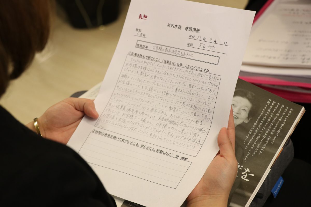 致知を読んで、学びを共有するための場として、木鶏会(もっけいかい)という取り組みを新しく始めました。木鶏会は致知出版社が開催している致知からの学びを深めるための研修プログラムです。致知を読み、学びをシェアし、他人の考え方を知り受け入れることで人間力を高め、徳をあげていこうという心の教育の一貫です。心の教育を重要視しているリビアスにとっては非常に重要な研修の1つとなる取り組みとなりました。