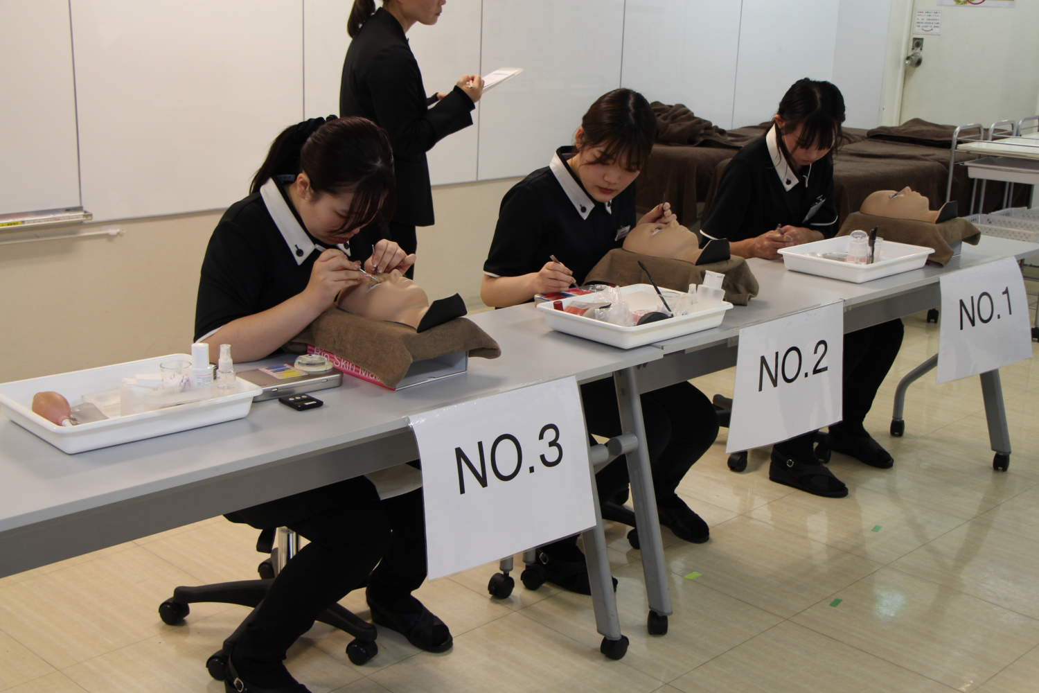 アイブロウ競技では、メイク仕上げの技術が競われました。